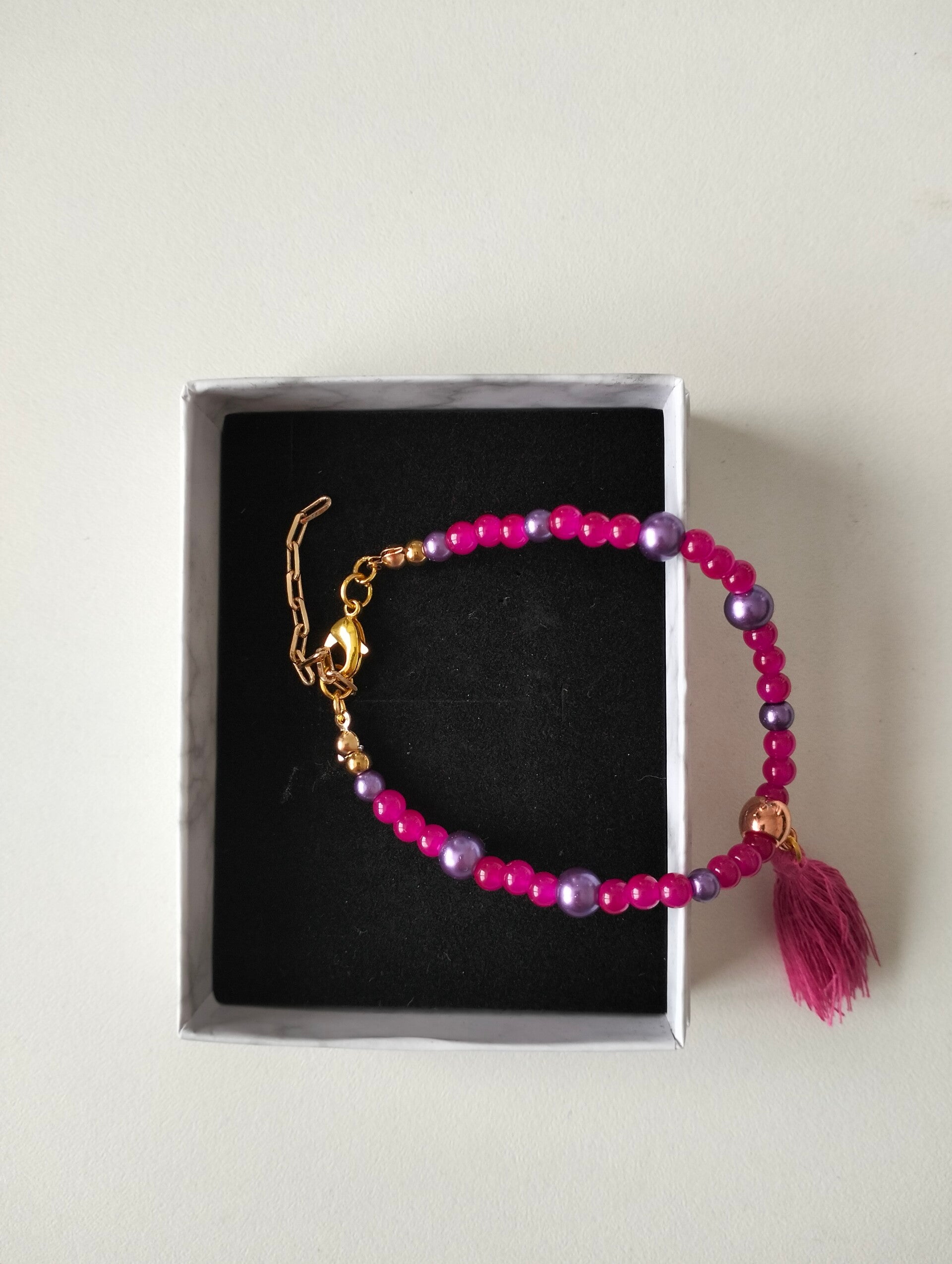 Armbandje is gemaakt van Fuchsia Rose en violet purple