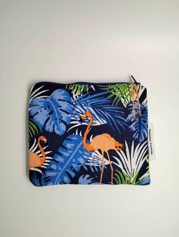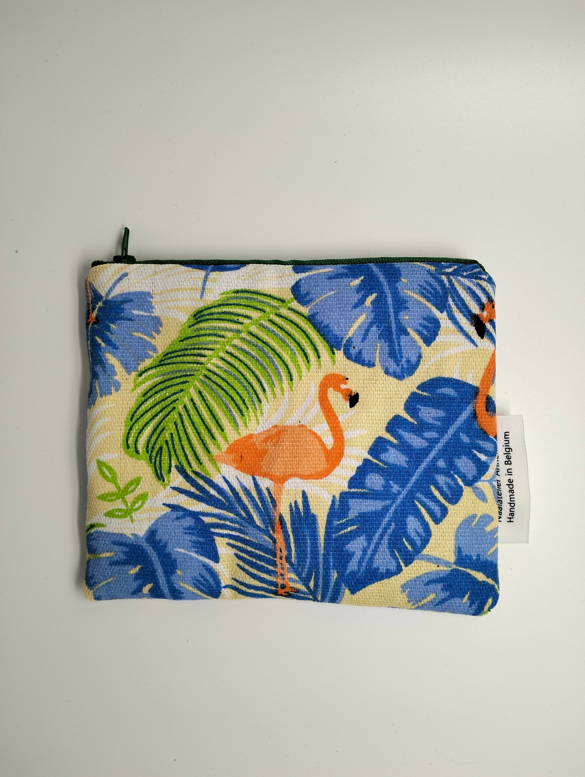 Clutch gemaakt van canvas katoen met Tropische Flamingo's met katoenen binnenvoering