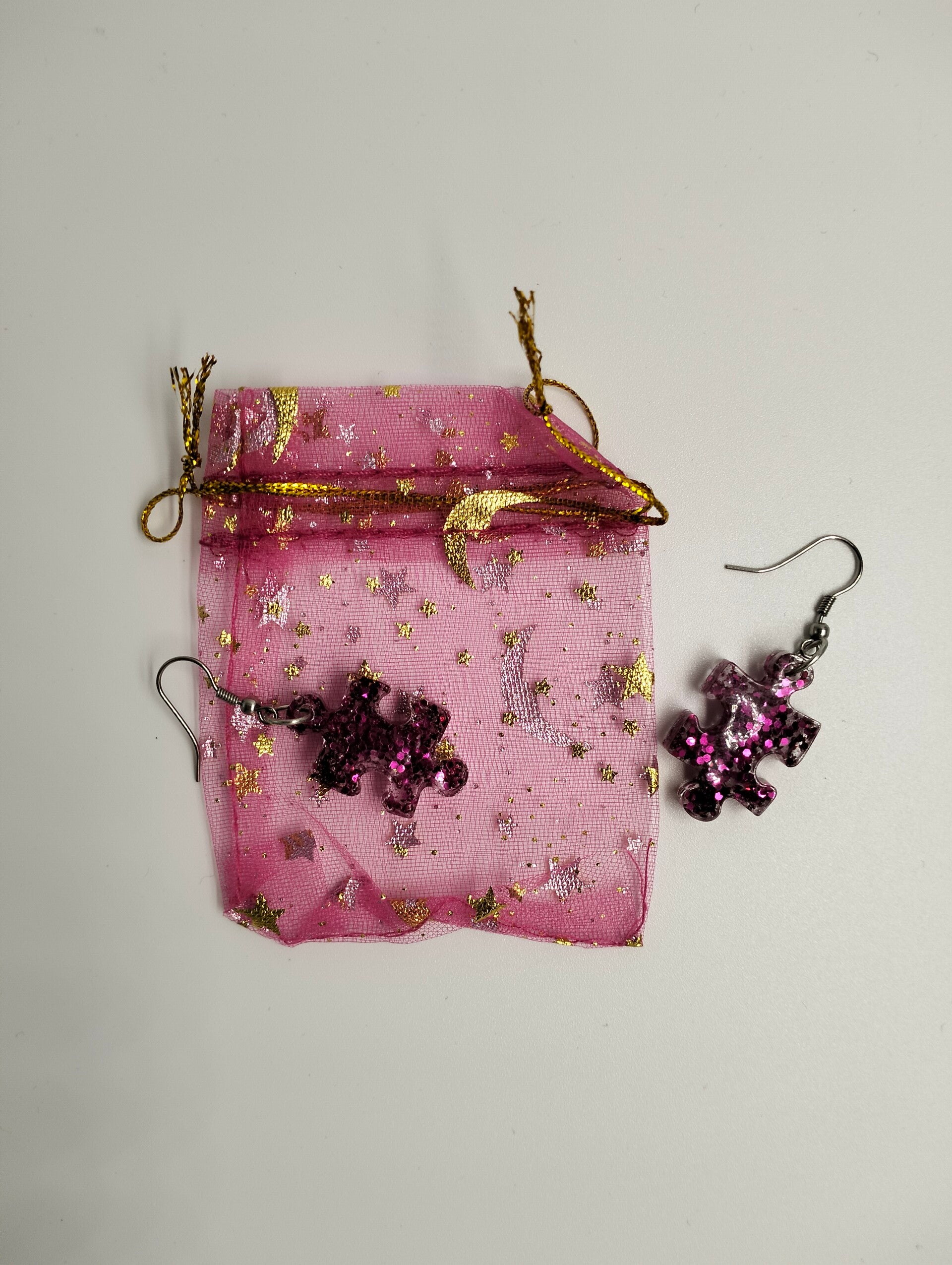 Oorhangers Epoxy Hars ' Puzzelstukje Glitter'