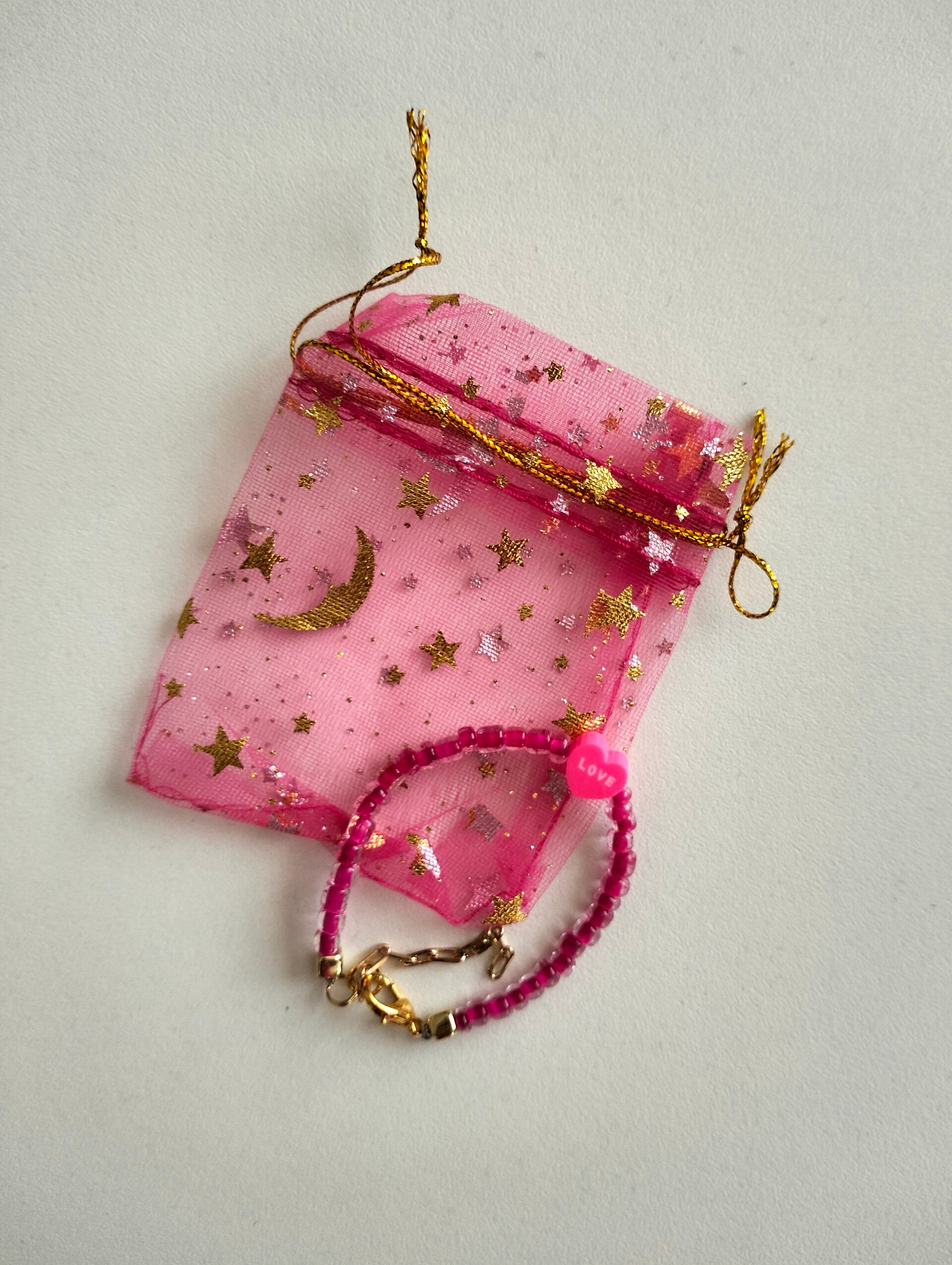 handgemaakt met siliconen hartje en kraaltjes