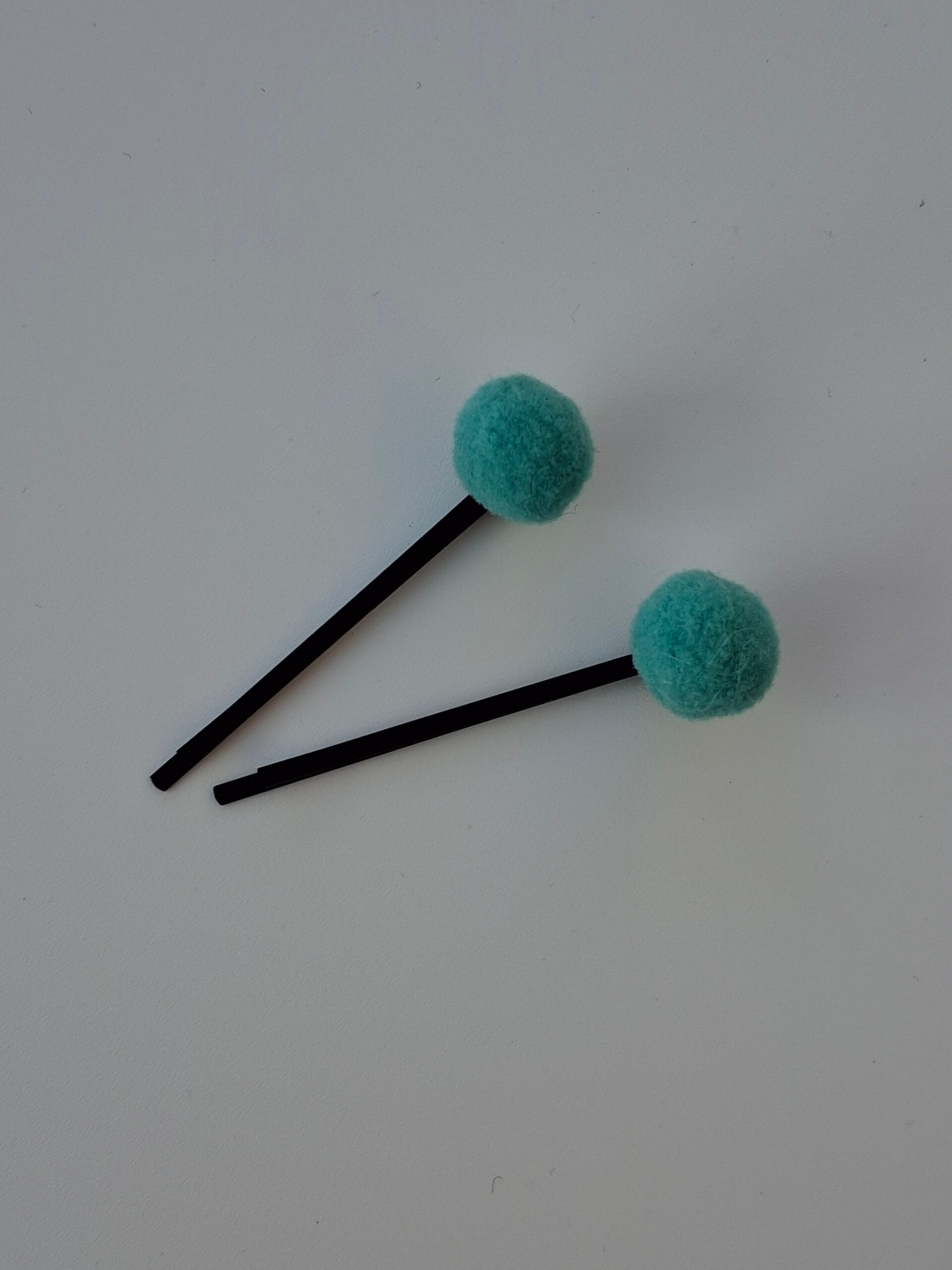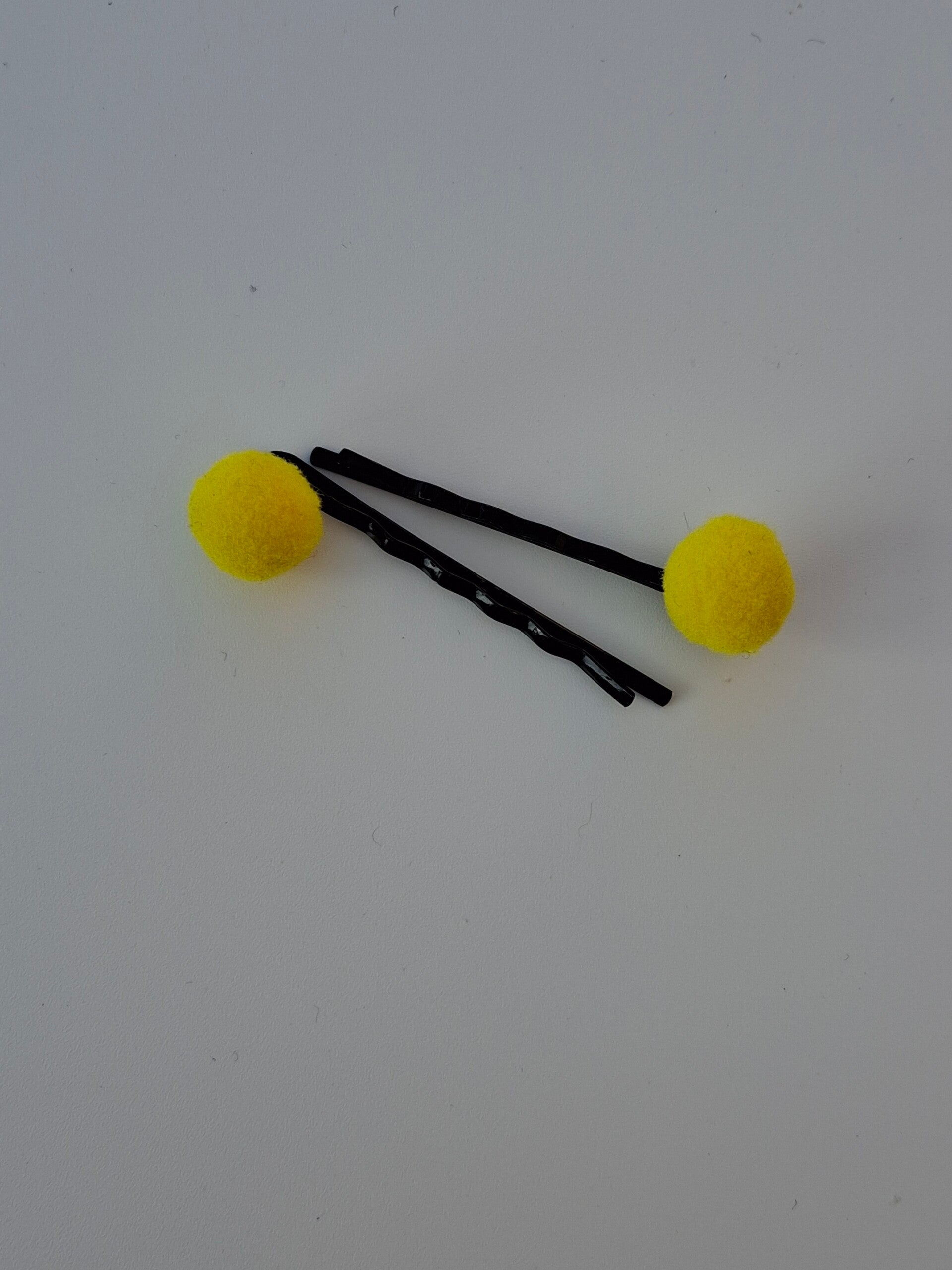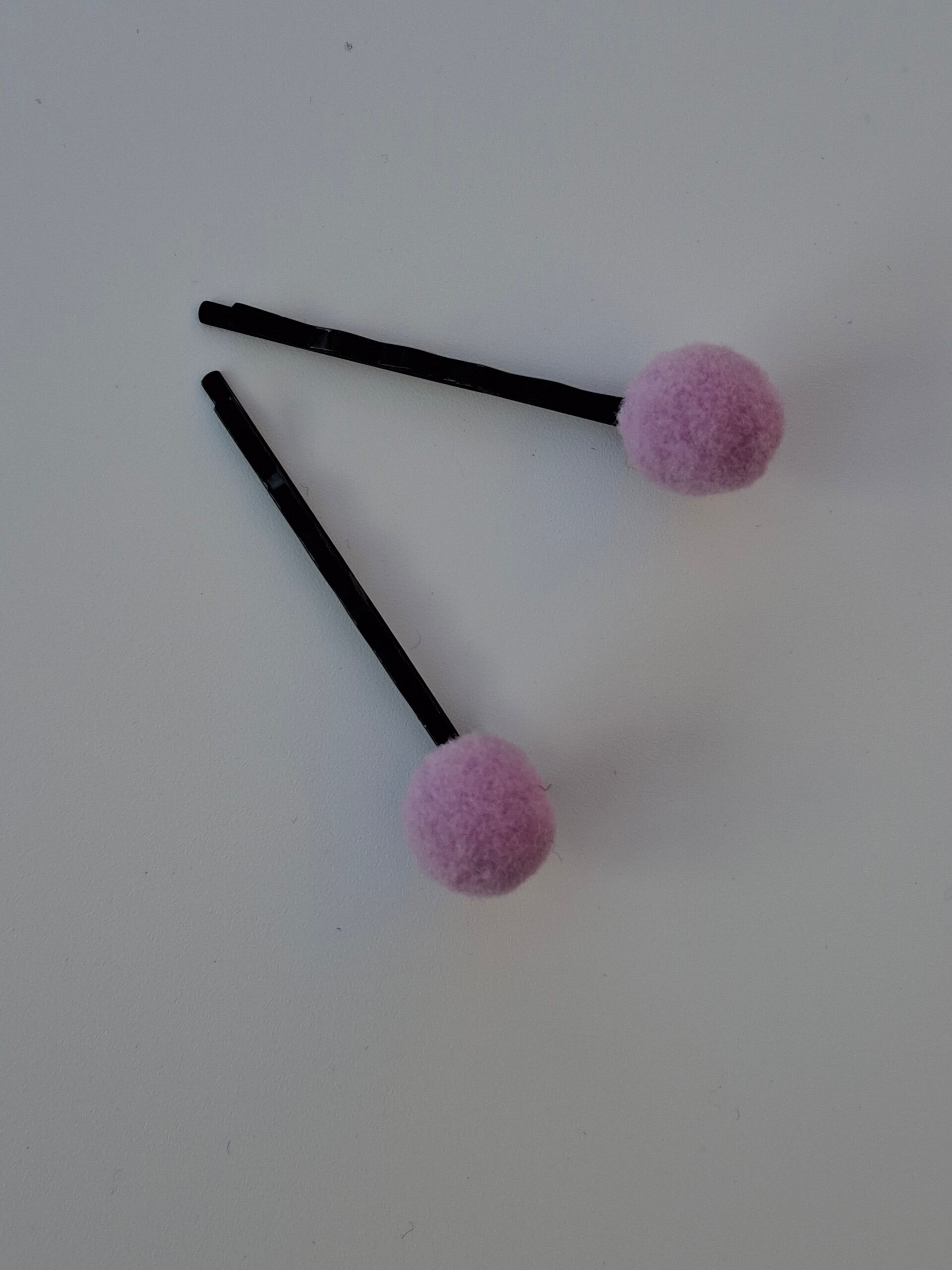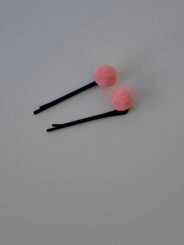 Deze schuifspeldjes met pomponnetjes zijn verkrijgbaar in verschillende kleuren, pomponnetjes zijn bevestigd op zwarte schuifspeldjes