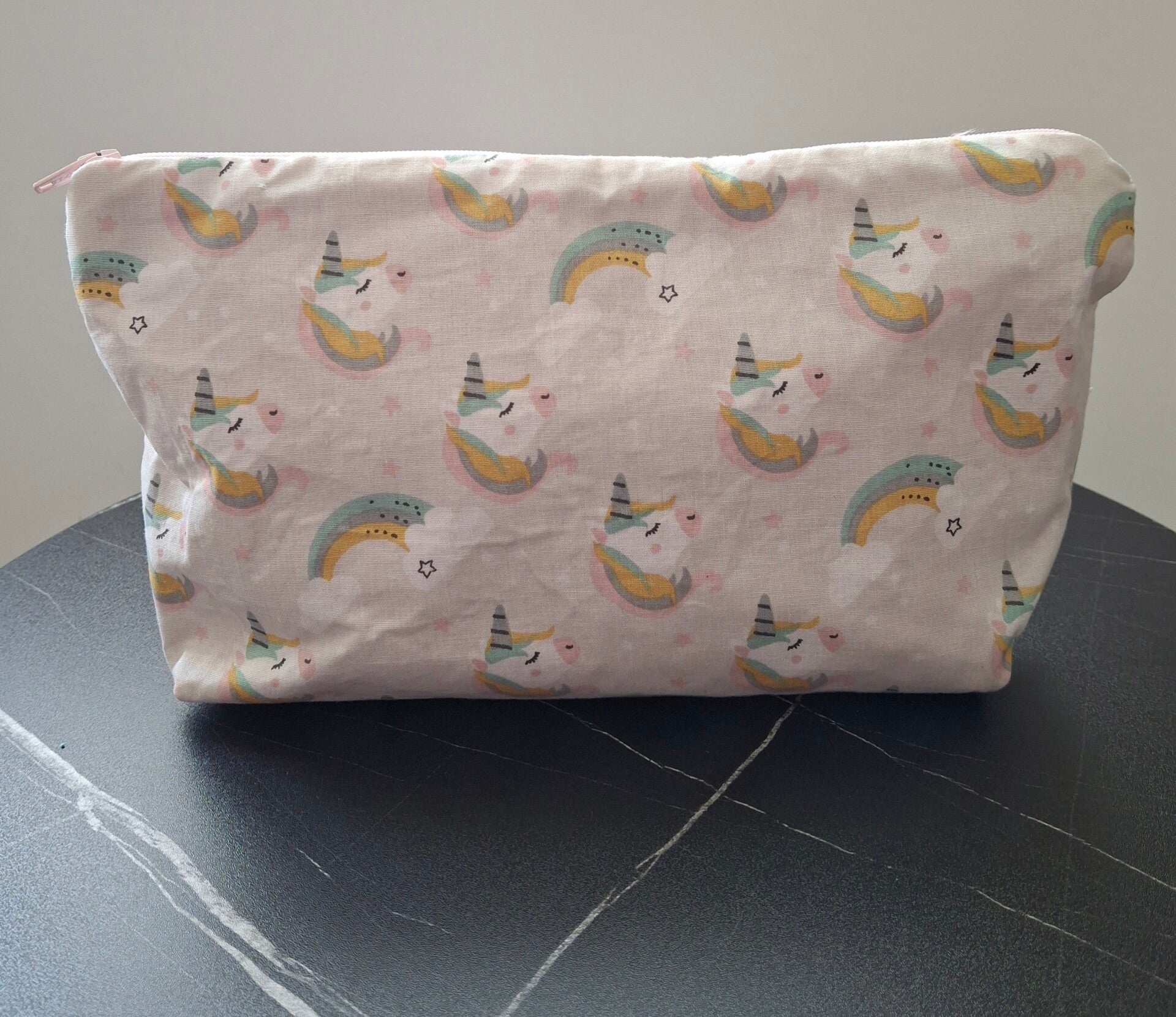 Toilettas met unicorns. Binnenkant afgewerkt met waterdichte stof. Gemaakt van 100% katoen.