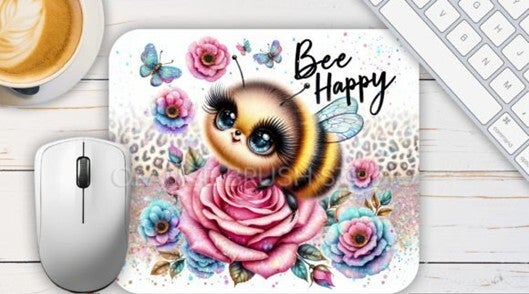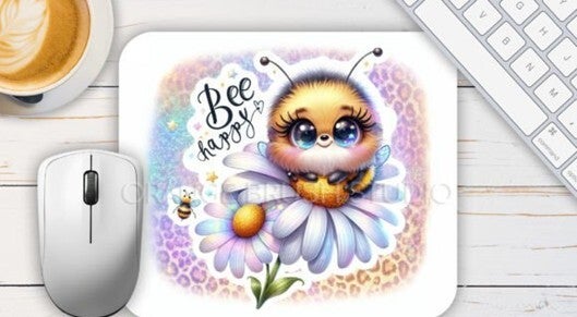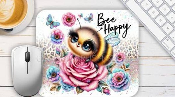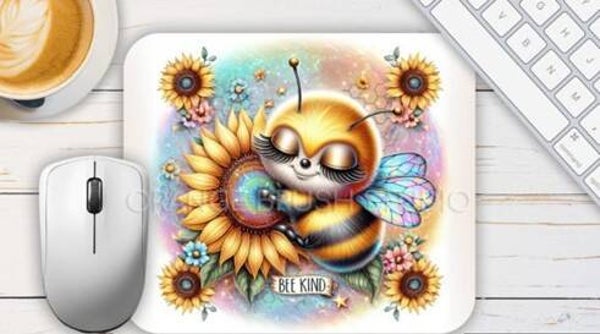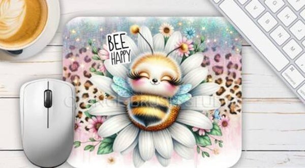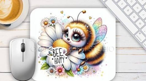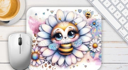 Muismat bedruk met bijen die niet steken maar wel heel leuk zijn.
