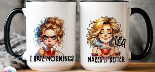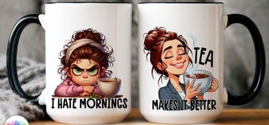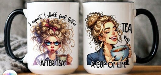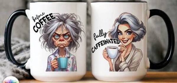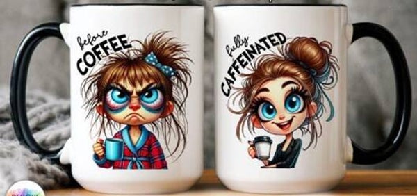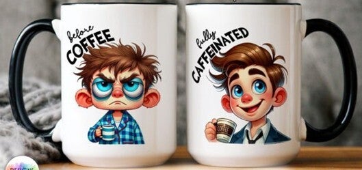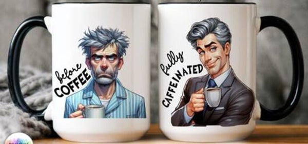 Mokken met grappige before coffee or after coffee, net als bij thee.